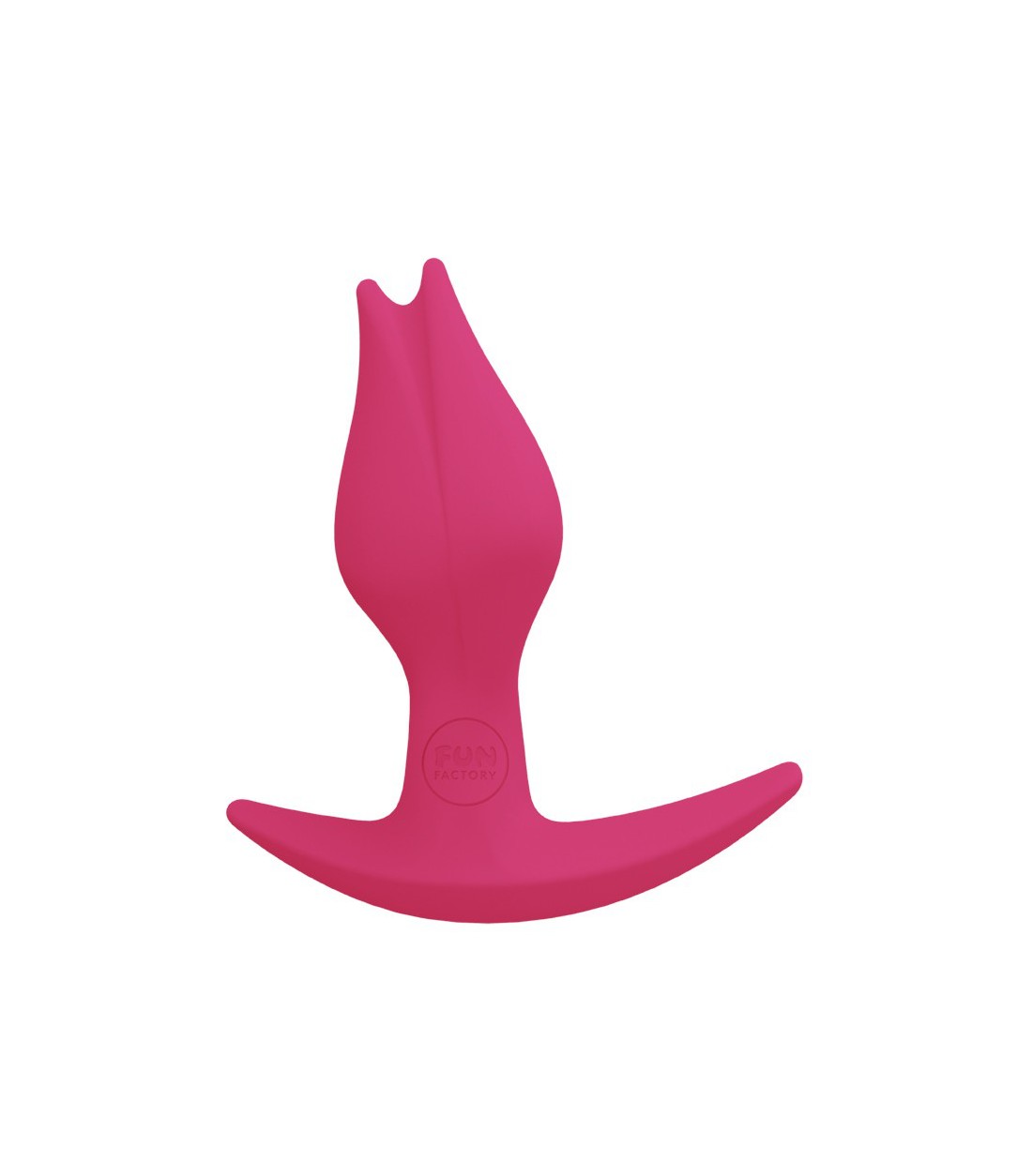Fun Factory - Bootie Fem, Raspberry - flexibel och böjlig analplugg i 100 % rosa, len silikon, passar både henne och honom, men speciellt anpassad för hennes nöja, speciell tunder samlag. Silikonet är dessutom ett kroppssäkrt material. Rundare, liten och delad topp och något formad som en tulipan. Ganska lång hals. Liten, men ändå en bra penetrerande längd.
