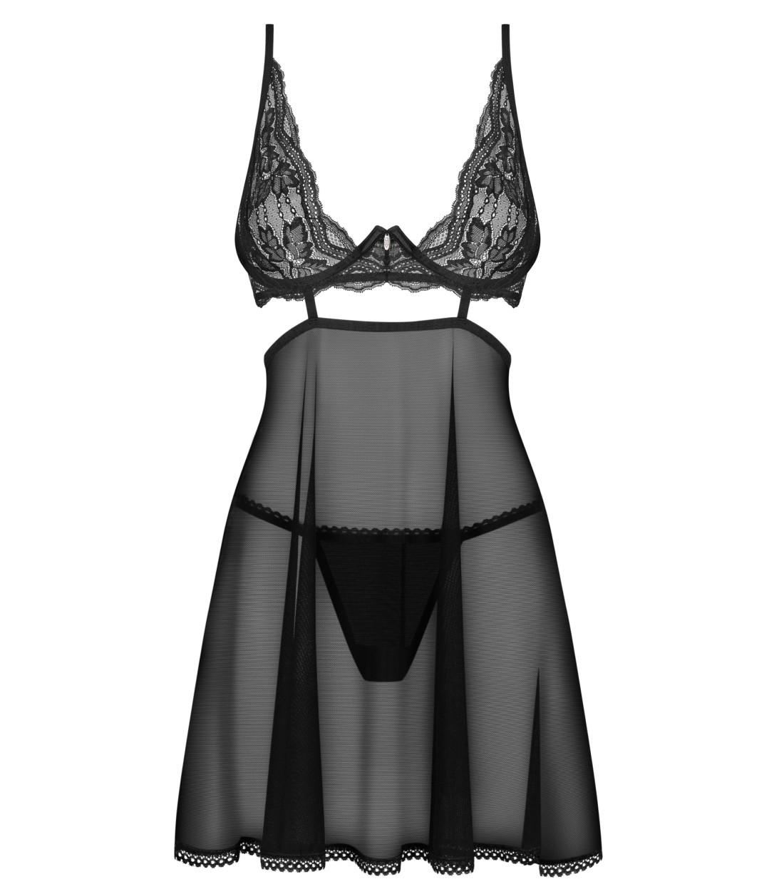 Obsessive - Nutris Babydoll & Thong, fint nät, genomskinligt och spets upptill på kuporna