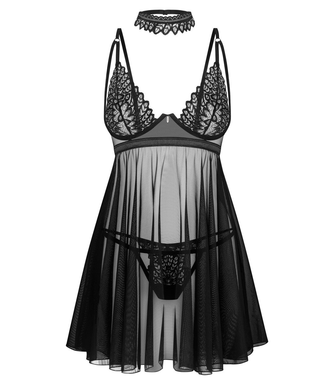 Obsessive - Donarella Babydoll & Thong, Choker, genomskinligt fint nät