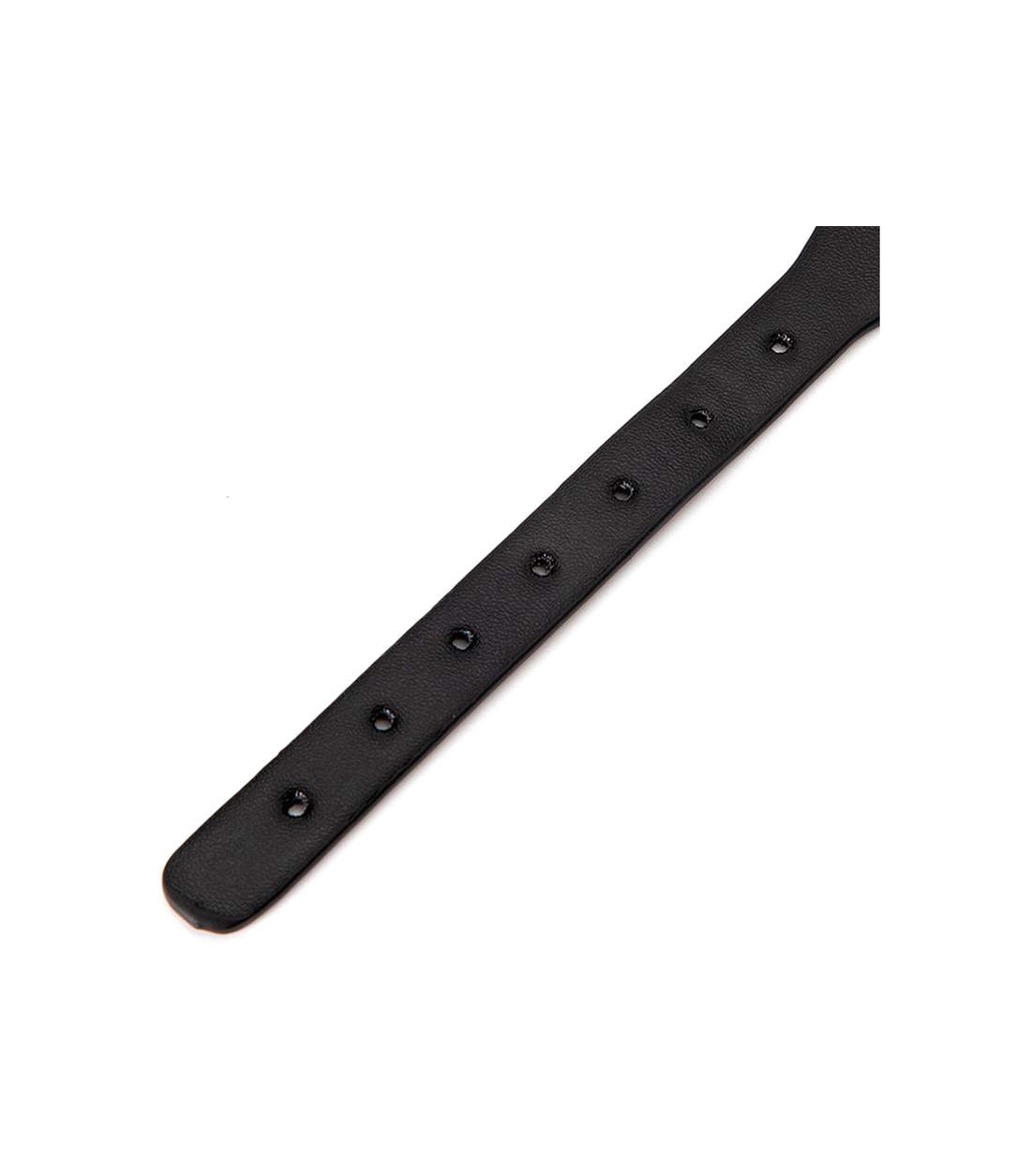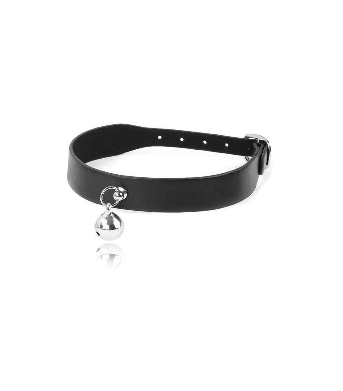 Collar with Leash and Bell från LateToBed - en härlig produkt bland många förföriska fetish-produkter från märket. Fantastiskt snygg, minimalistisk i svart konstläder på utsidan, utan vaddering på insidan, mjuk och sitter bra runt halsen med sina 7 hål för justering av storleken.