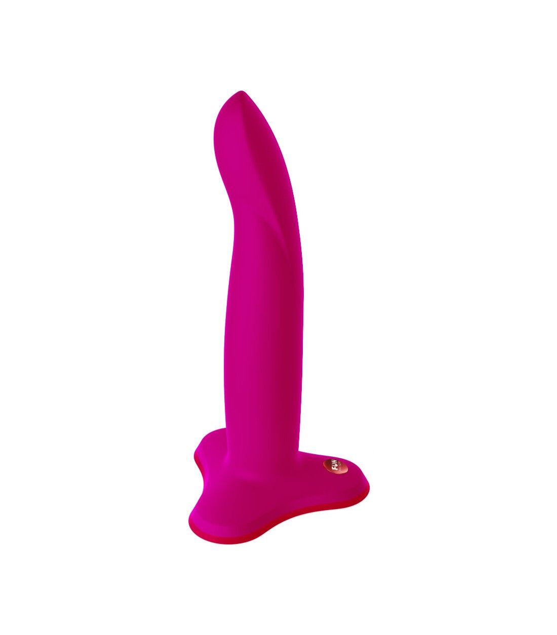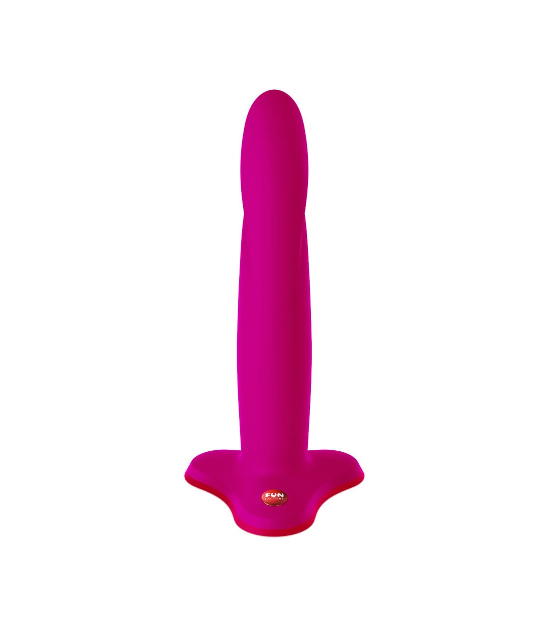 En lagom mjuk dong, i fast, mörkrosa silikon, men ändå lite mjukare på ytan, från tyska Fun Factory.