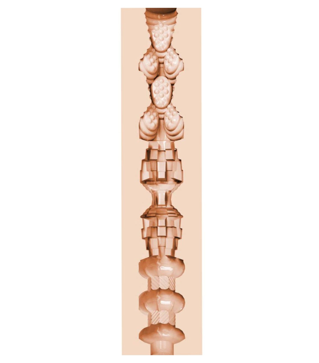 I detta fall är det Kayley Gunner som får en egen Fleshlight. Den har ett eget unik mönster, återkommande 3 stycken varianter på raken i olika längder - Fully Loaded heter mönstret och är både knottrigt och kantigt.