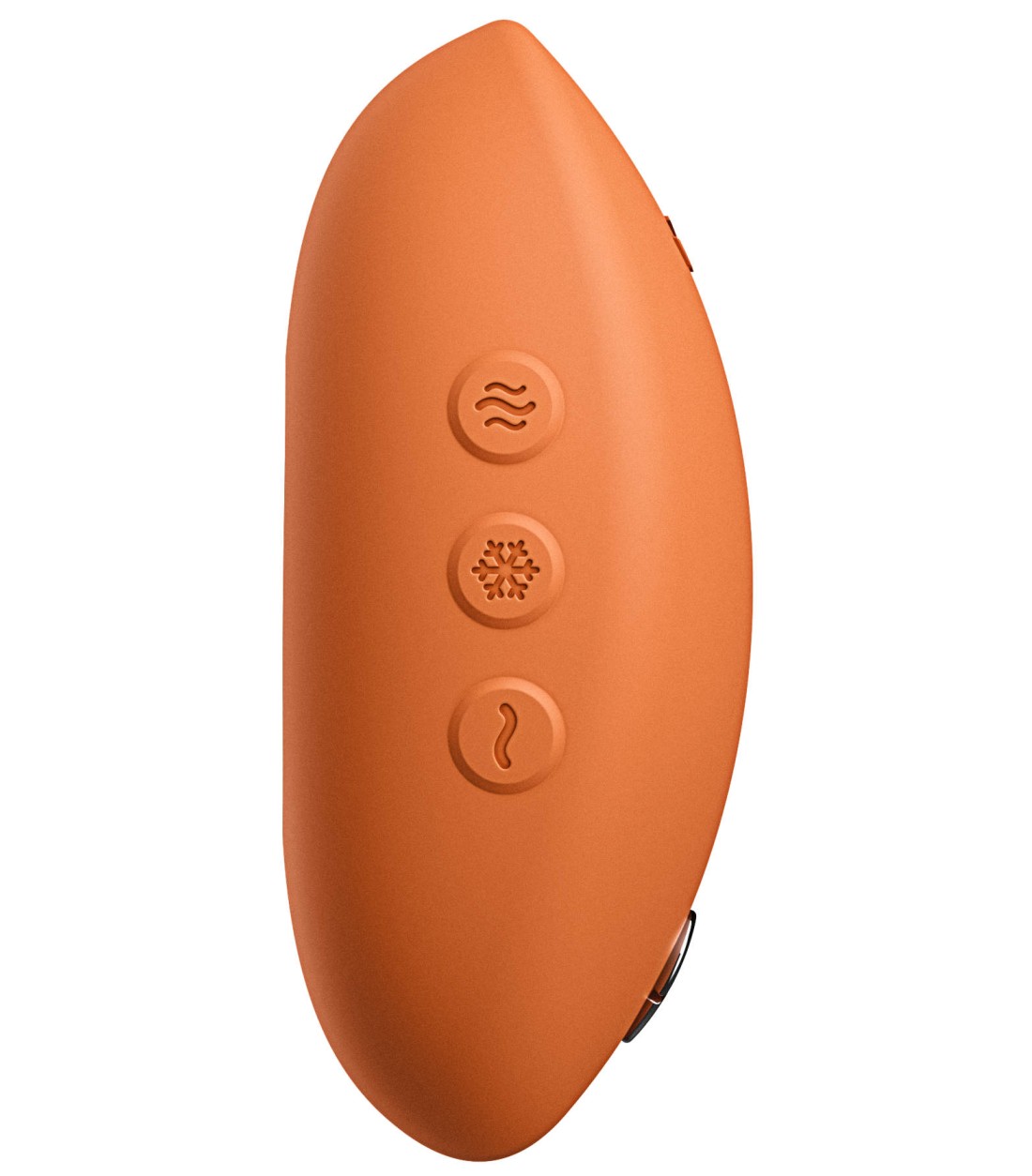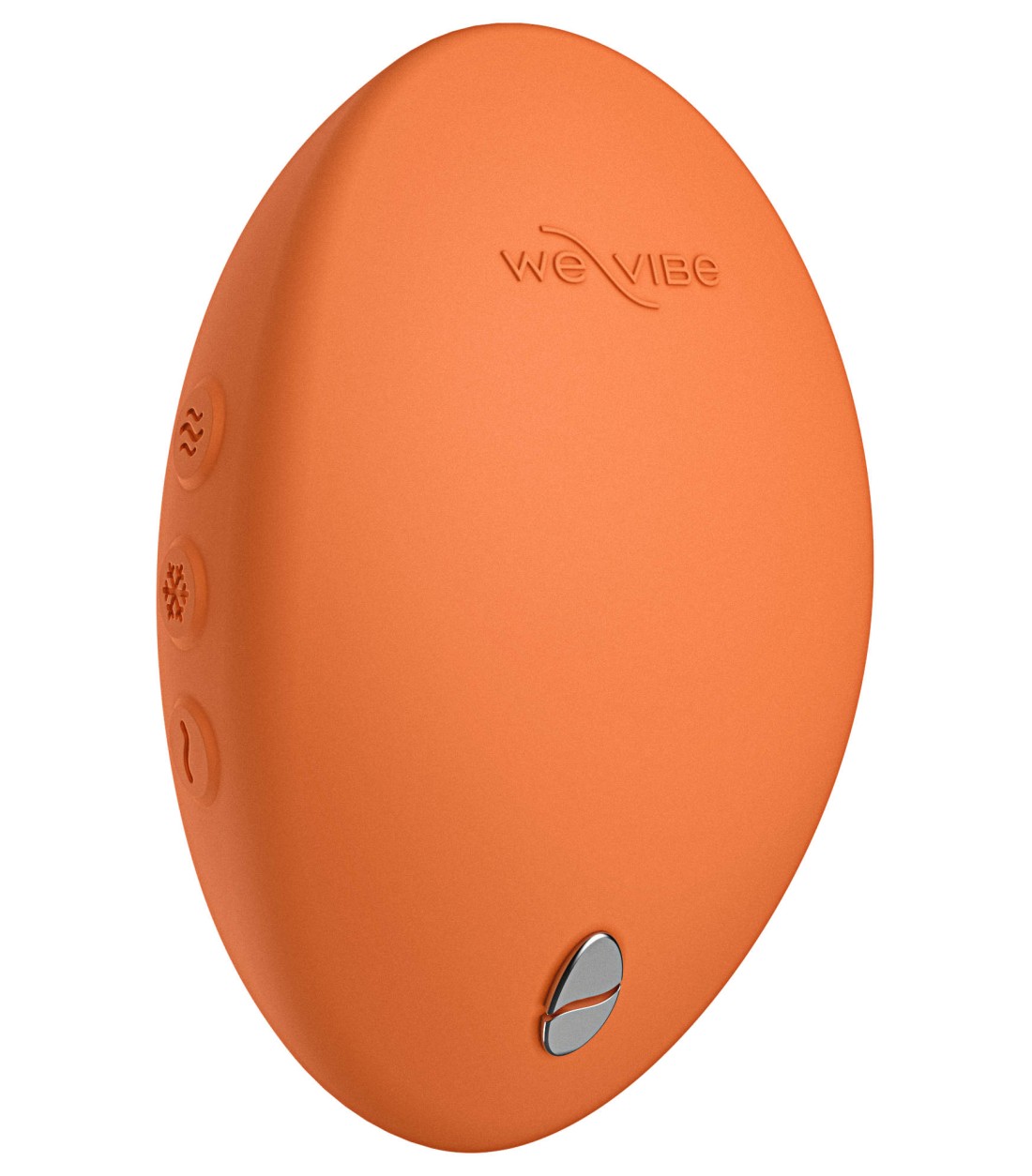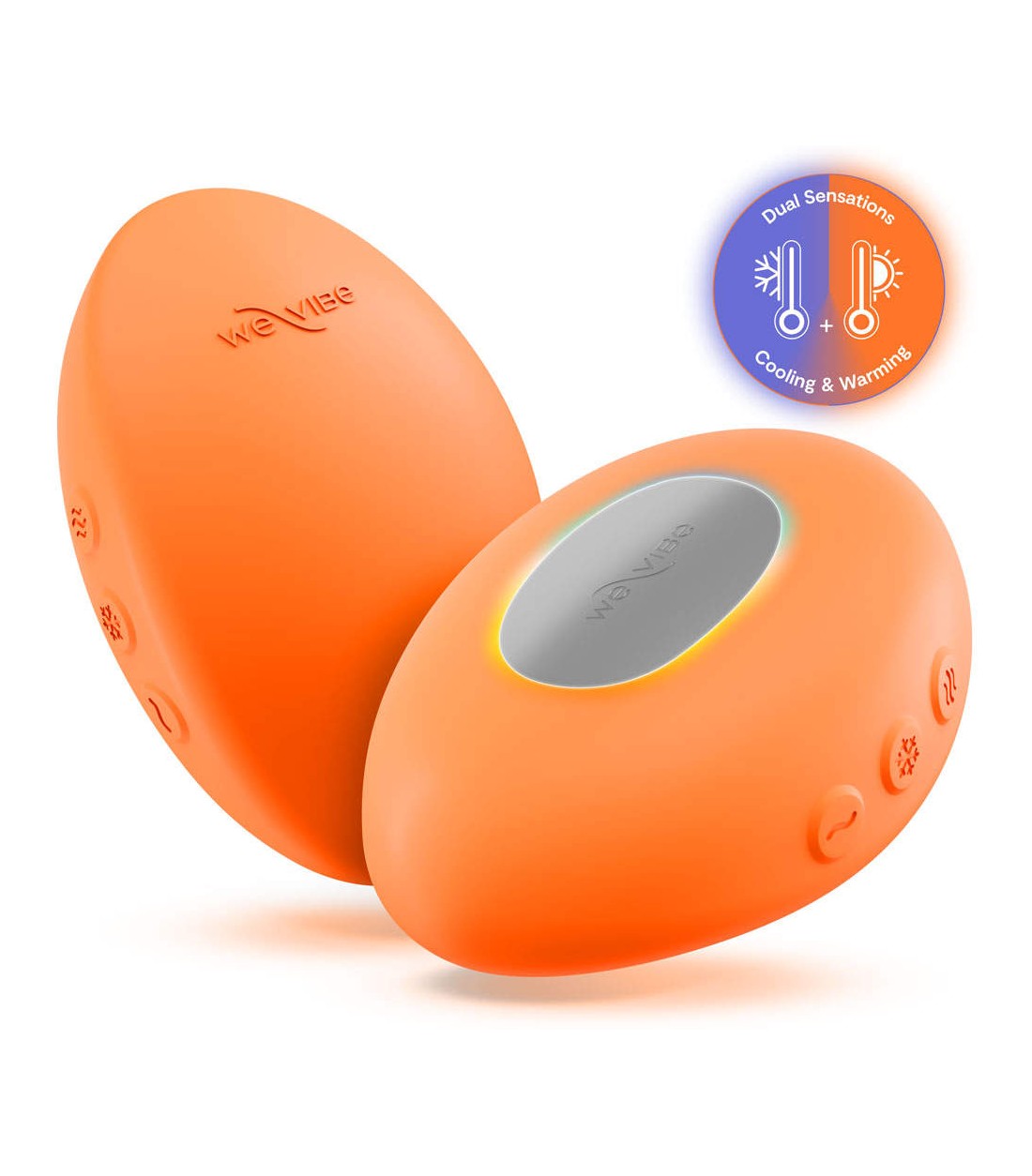 We-Vibe - Temp, Tangerine är en ny snygg vibrator som sitter bra i handen och dessutom har härligt element i mitten som kan både värmas eller kylas på varma dagar.