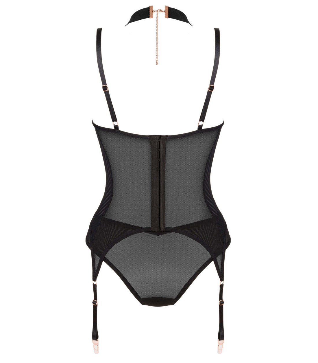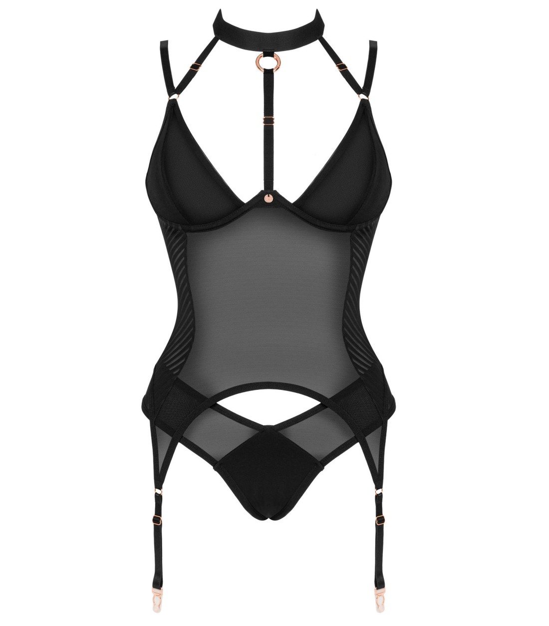 Obsessive - Brasica Corset & Panies, genomskinligt nätmaterial, med remmar kring halsen