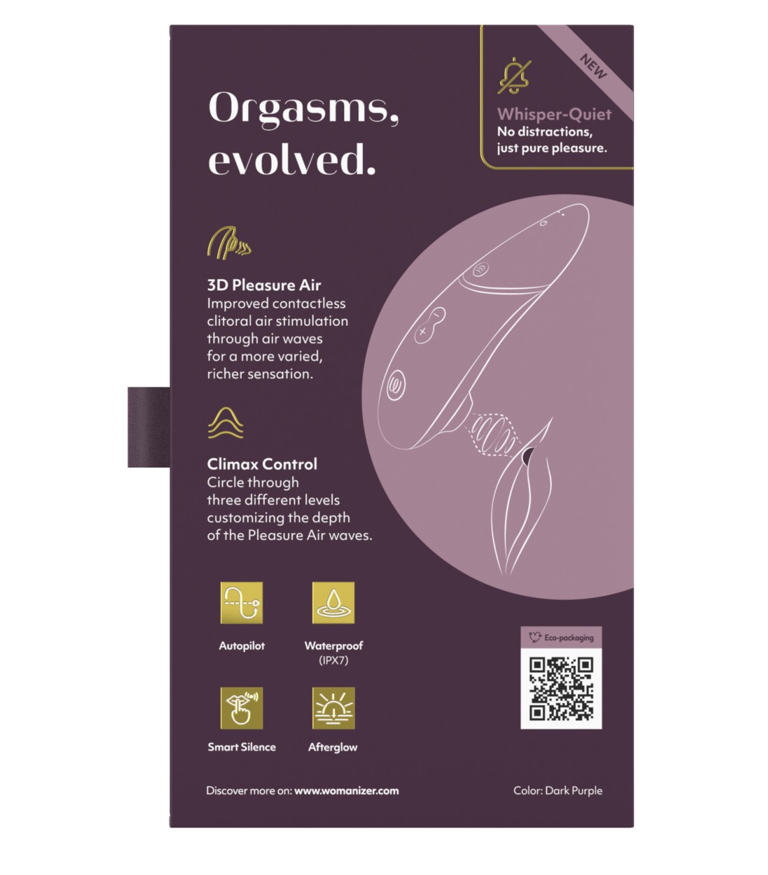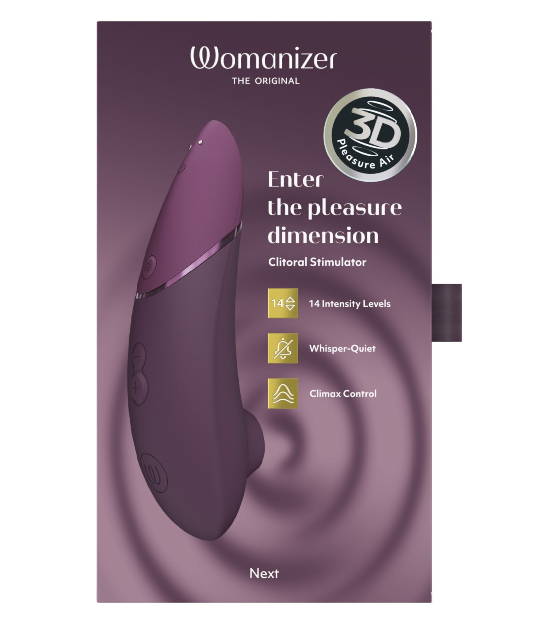 Denna generation av Womanizers toppstimulator har framförallt flera förbättringar; funktionerna Afterglow och Climax Control, som ger en ny dimension av 3D Pleasure Air Technology. Dessutom Har man gjort Next till en mycket tystare luftstimulator.