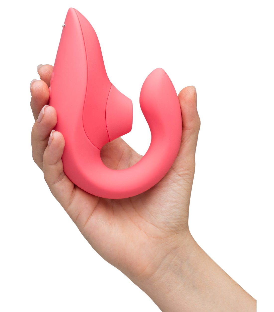 Extrem skön, ljusrosa och ganska kompakt klitoris- och g-punktsstimulans med nya vackert formade Blend, en Womanizer-produkt!