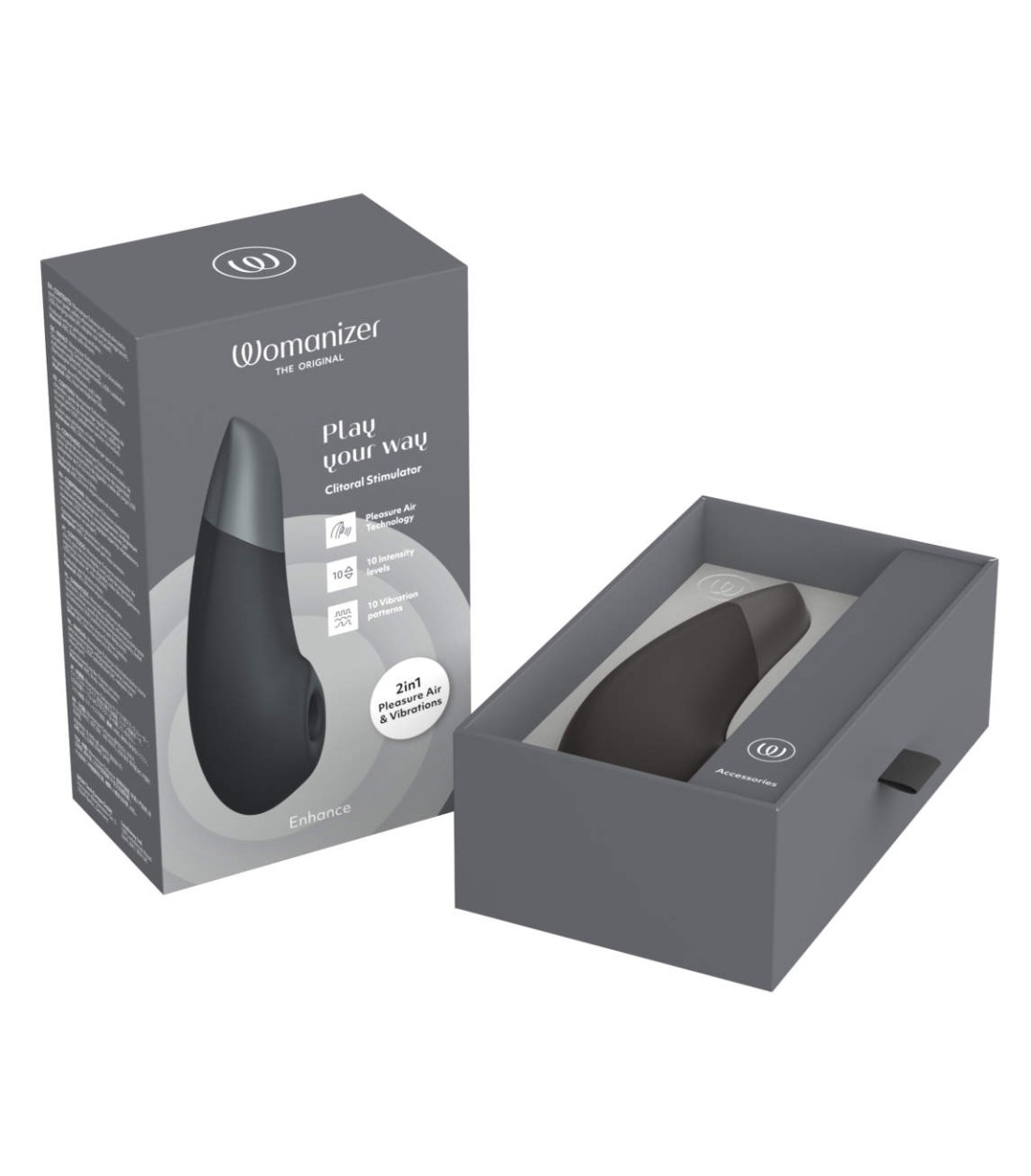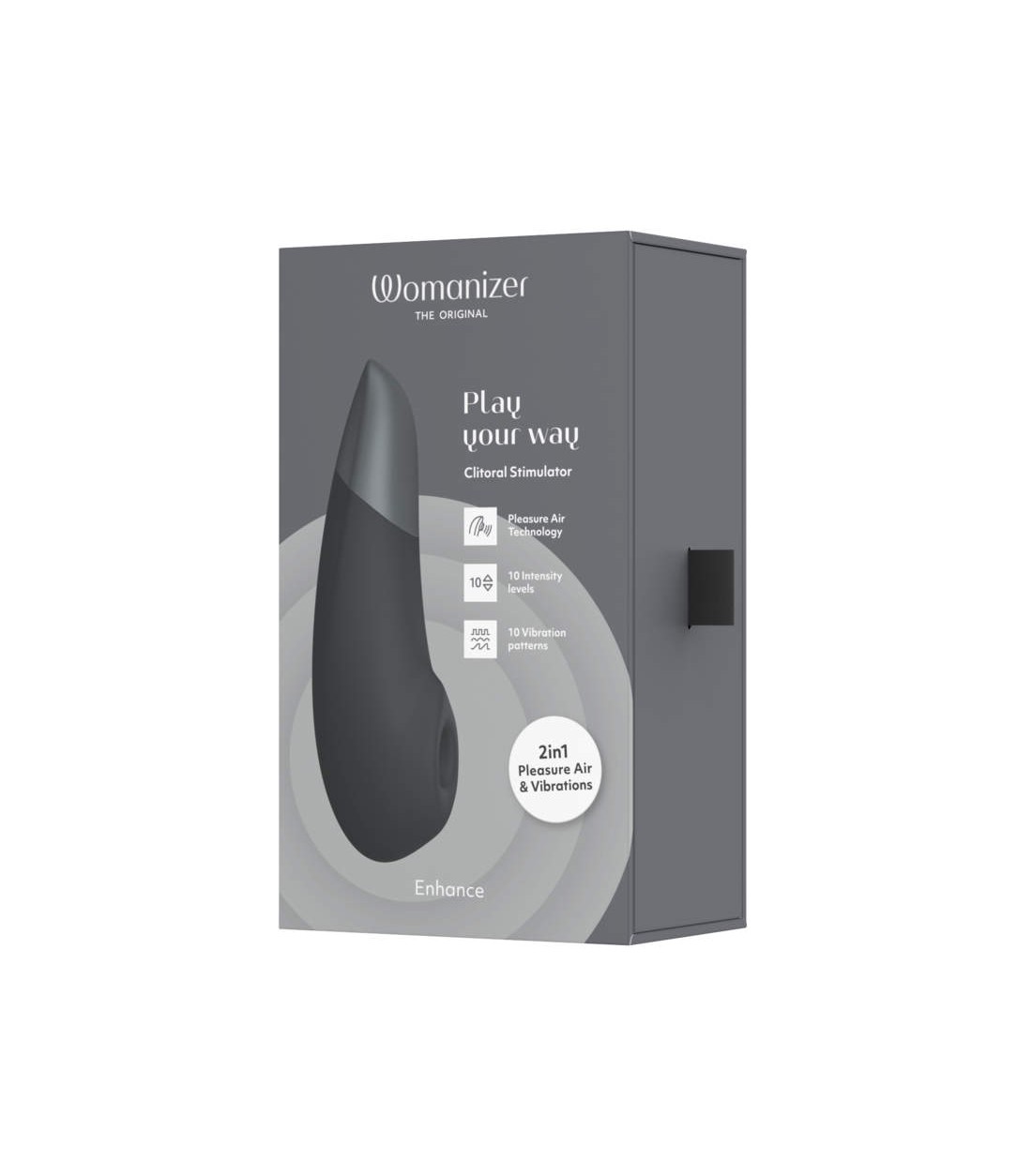 Womanizer - Enhance är den nyaste klitorisstimulatorn från Womanizer och härlig leksak för starka och sköna orgasmer. Utan "fysisk" beröring stimuleras din klitoris på en helt nytt och spännande sätt, faktiskt på två olka sätt! För dig som inte vet vad du kanske föredrar och vill inte kompromissa eller avstå från något har denna stimulator både lufttrycksstimulans och vibrationer.