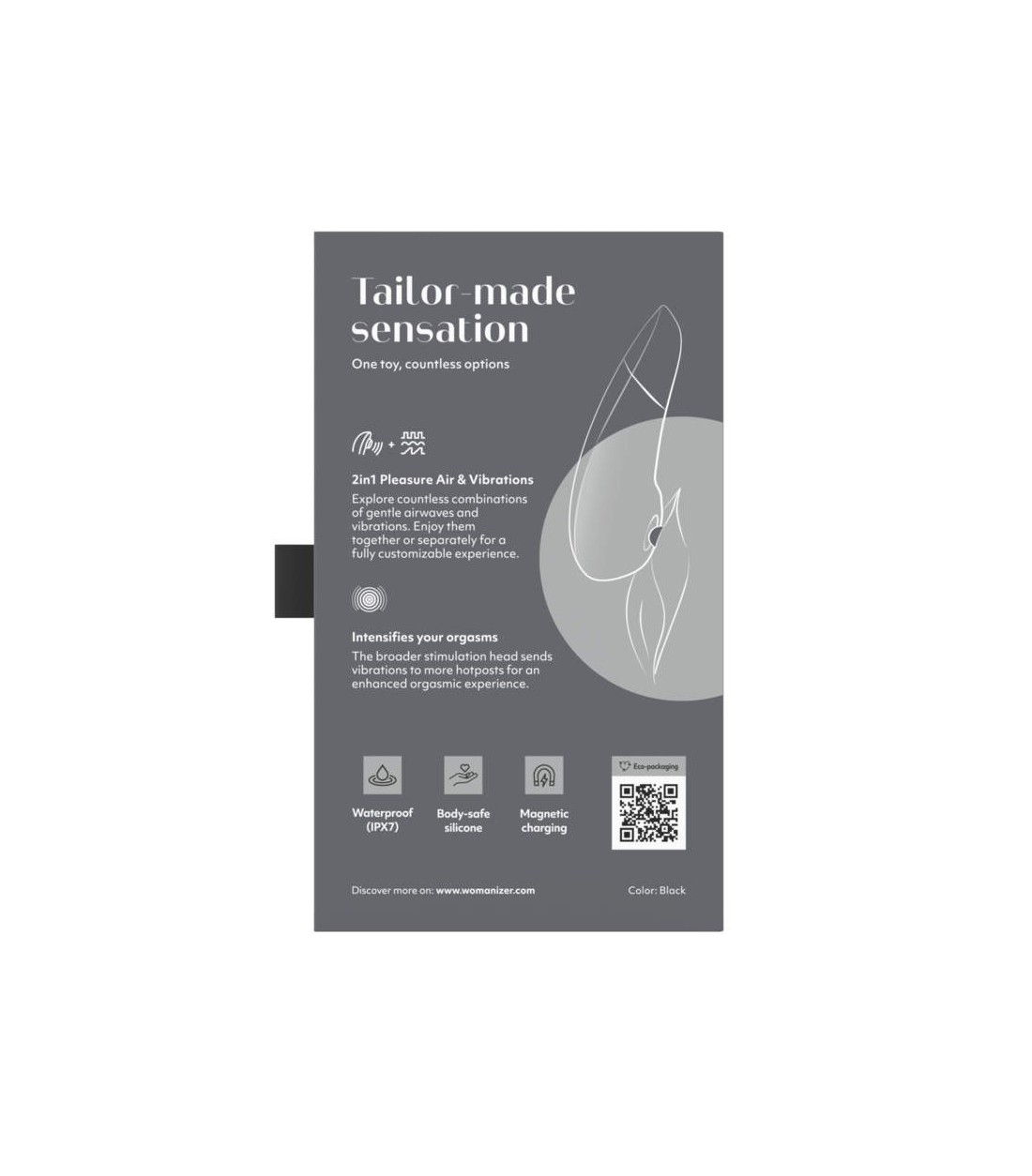 Extrem skön, 2 i 1, svart och med både lufttryck och vibration! Klitorisstimulans med vackert formade Womanizer Enhance!