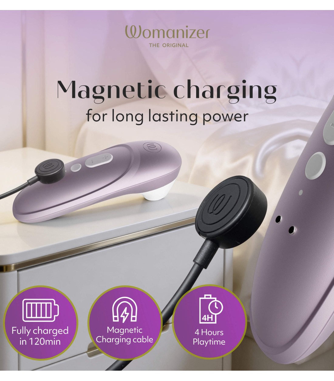 Liten, avlång, ljuslila, söt, enkel klitorisstimulans med nya vackert formade Womanizer PRO med lång batteritid och 11 styrkenivåer!