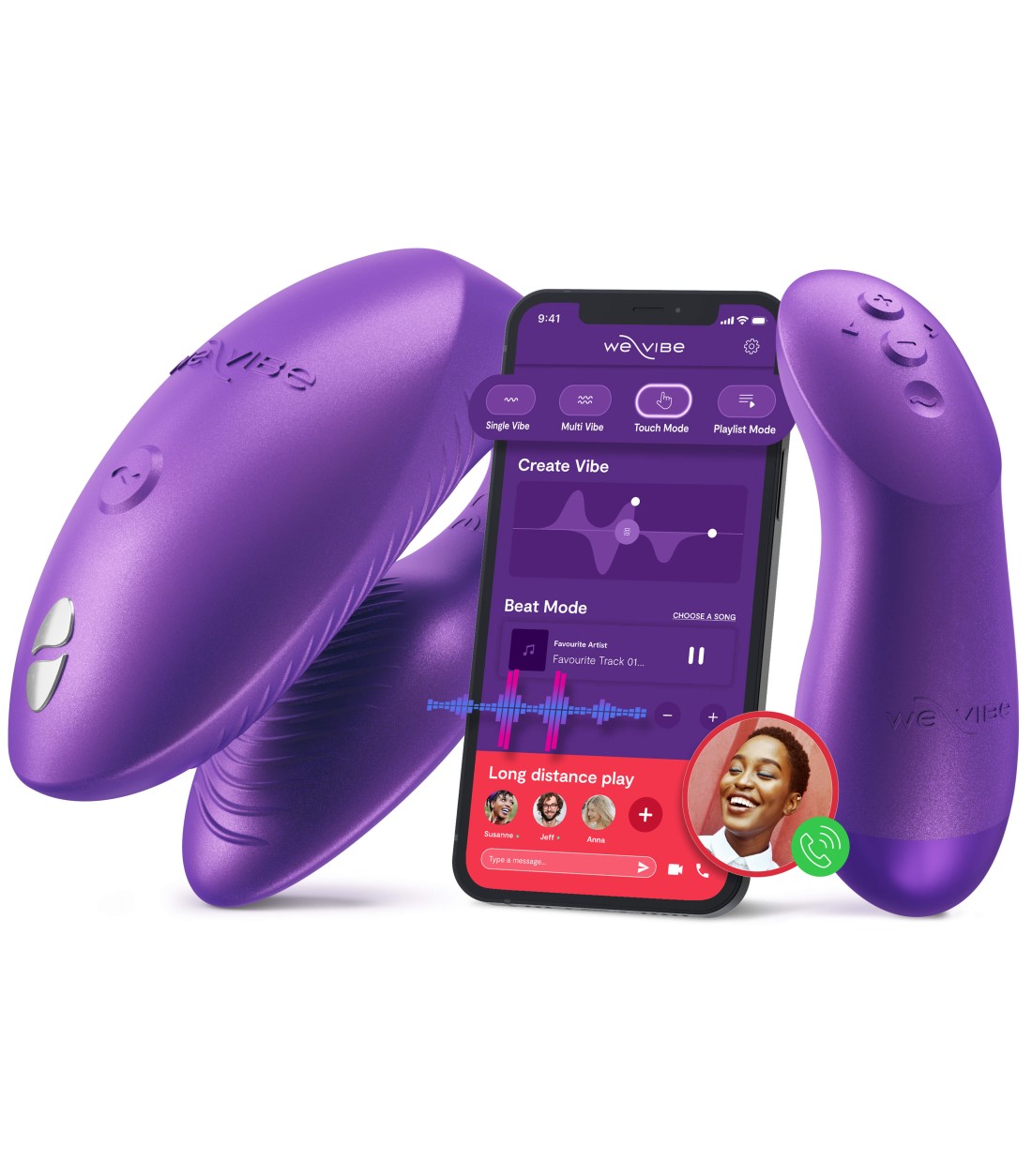 - Touch Sense Mode som justerar vibrationer med partners rörelser (aktiveras i appen)