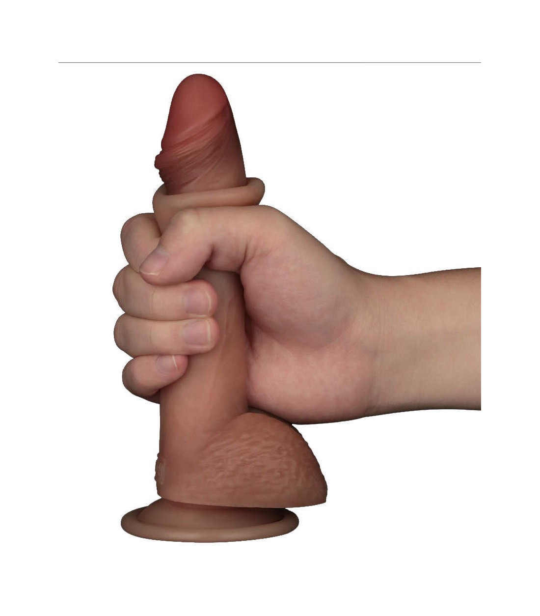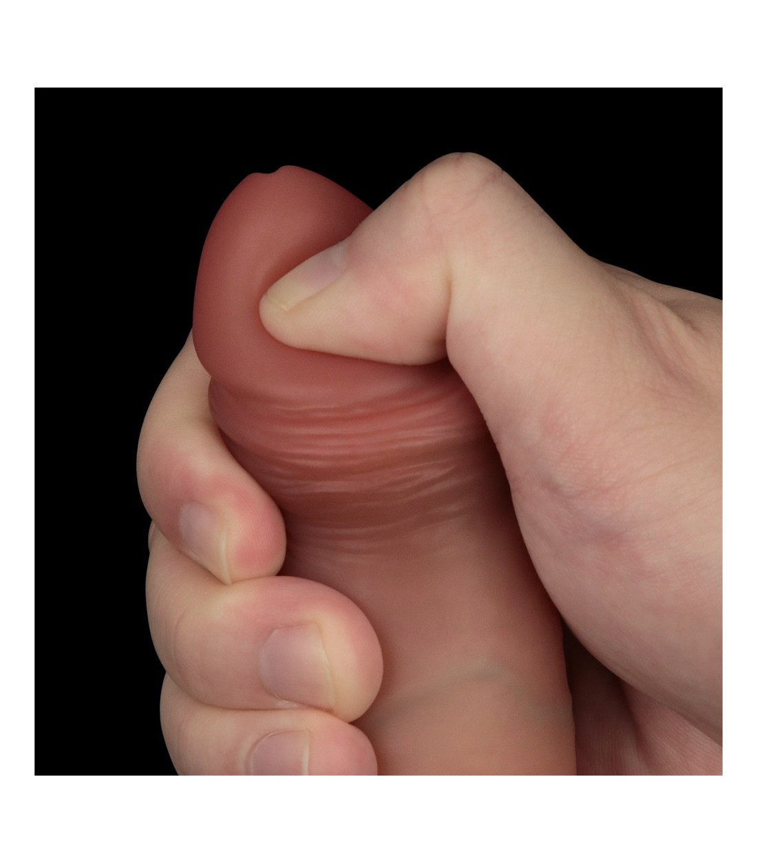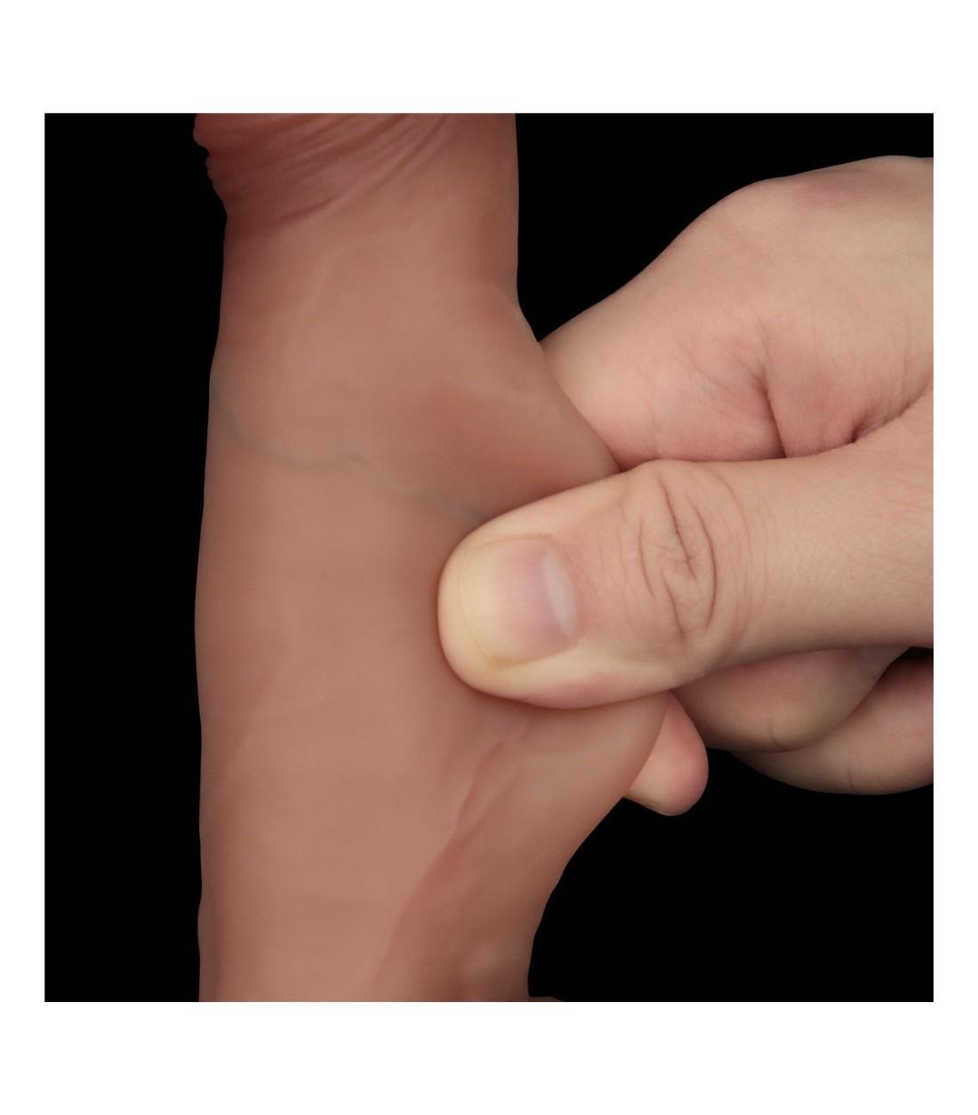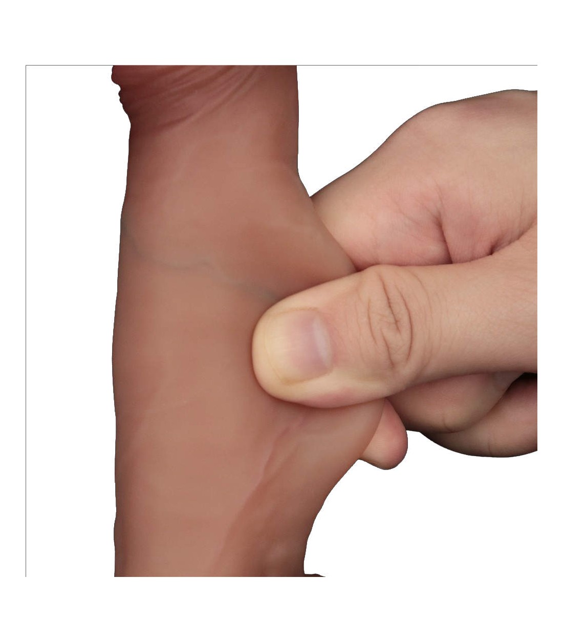 Den yttre delen som är det andra lagret känns nästan som hud, riktigt skinn som sitter på dongen. Skinet rör sig inte riktigt, men uppför sig som på en penis under en erektion.