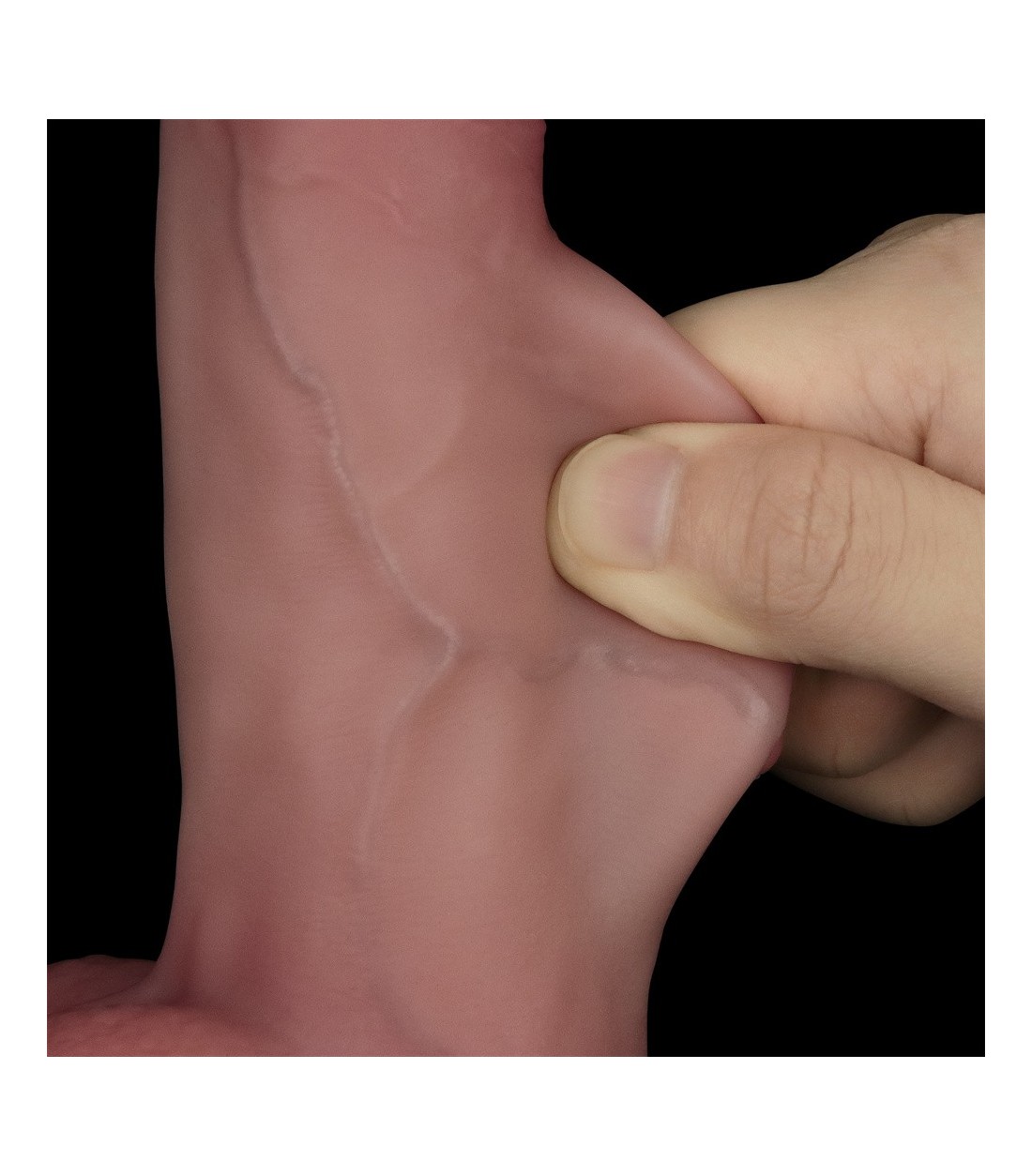 Den yttre delen som är det andra lagret känns nästan som hud, riktigt skinn som sitter på dongen. Skinet uppför sig som på en penis under en erektion.