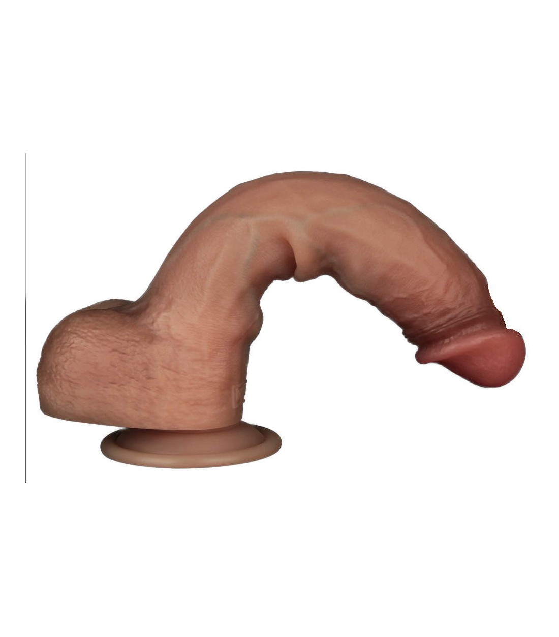 Denna dong har en längd på 23,2 cm, en bra tjocklek, lite brunare till färgen och har realistisk och mjuk yta, väldigt försiktigt ådrad. Lagom i storleken i denna modell, bra längre än normalt.