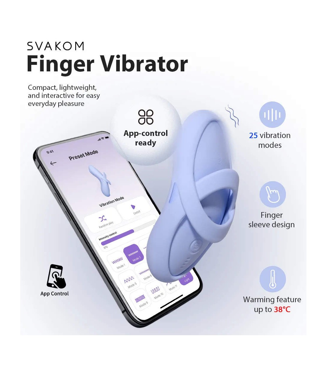 Echo 2 kan även användas med Svakom appen, som ger ytterligare möjligheter till att anpassa funktionerna efter ditt eget tycke.
