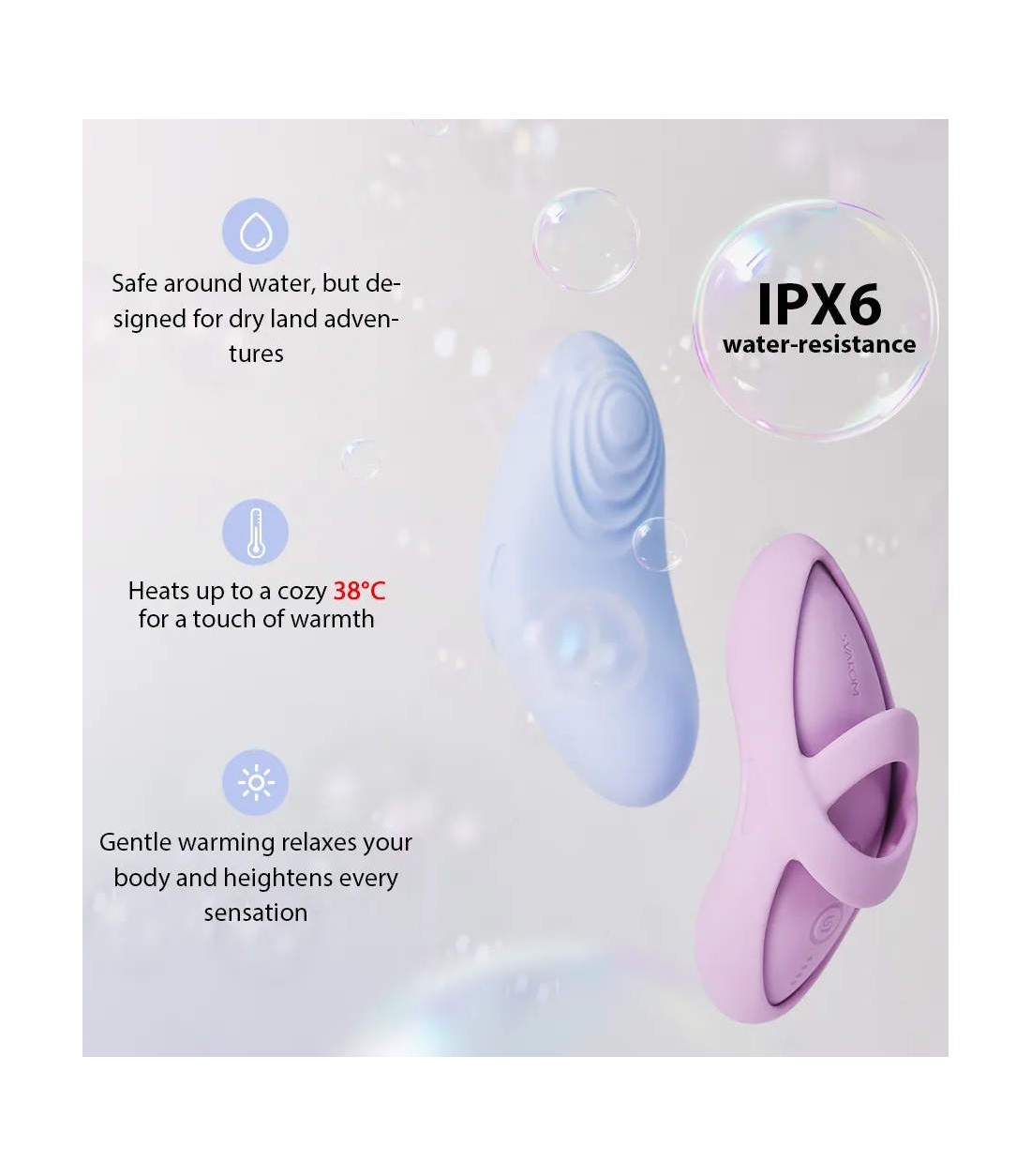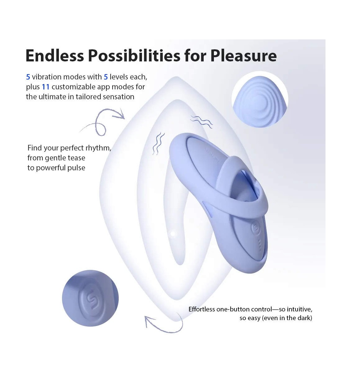 Med en uppvärmningsfunktion kan Echo 2 snabbt uppnå en behaglig temperatur mot huden. De 5 vibrationsmönstren med 5 intensiteter vardera ger rikliga variationsmöjligheter. Enkel knapptryckning låter dig kombinera och kontrollera de tysta funktionerna. Den har även ett reselås-