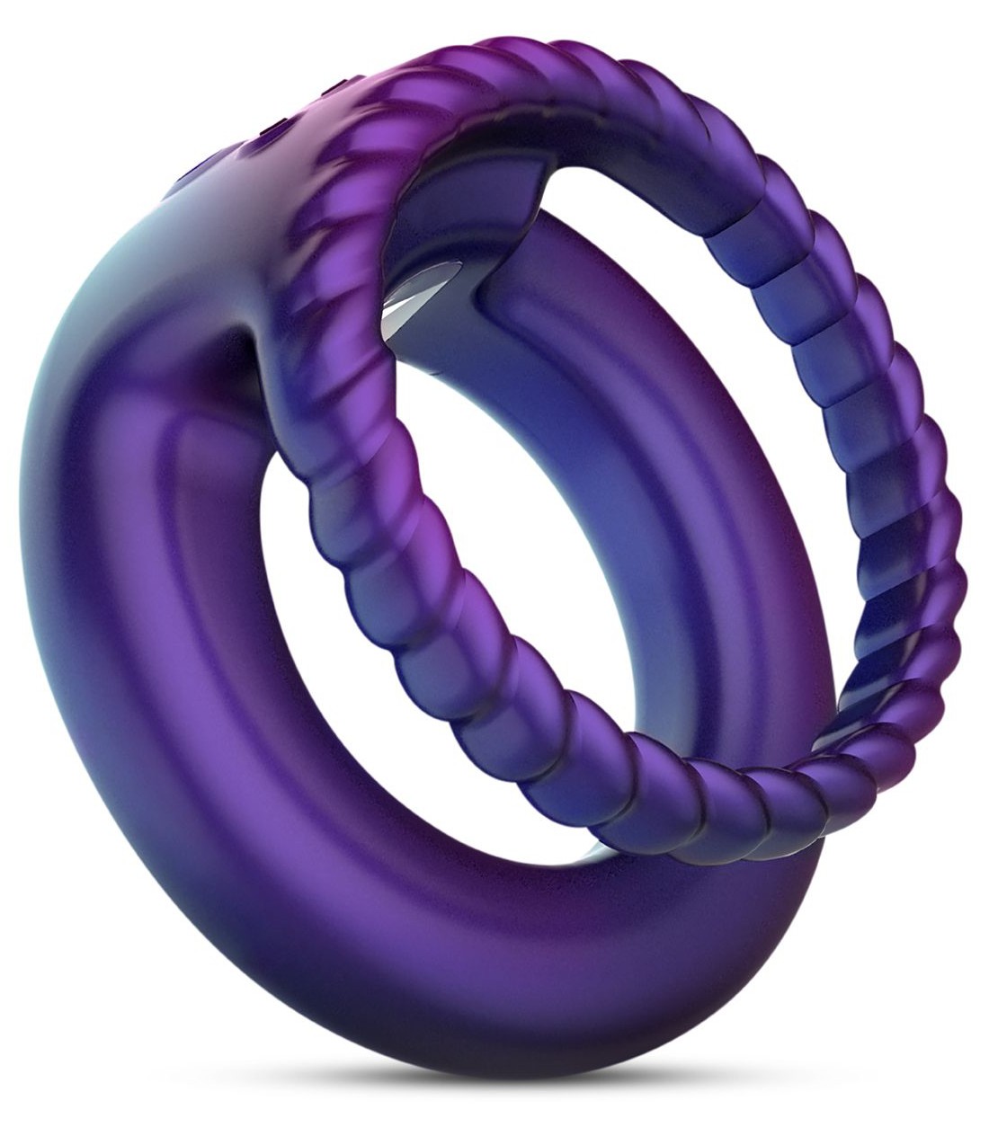 En kraftig. blå dubbelring med vibration, för penisen och pungen för att klämma åt och låta dig ha sex lite längre, samt även ge lite avstång till pungsäcken!