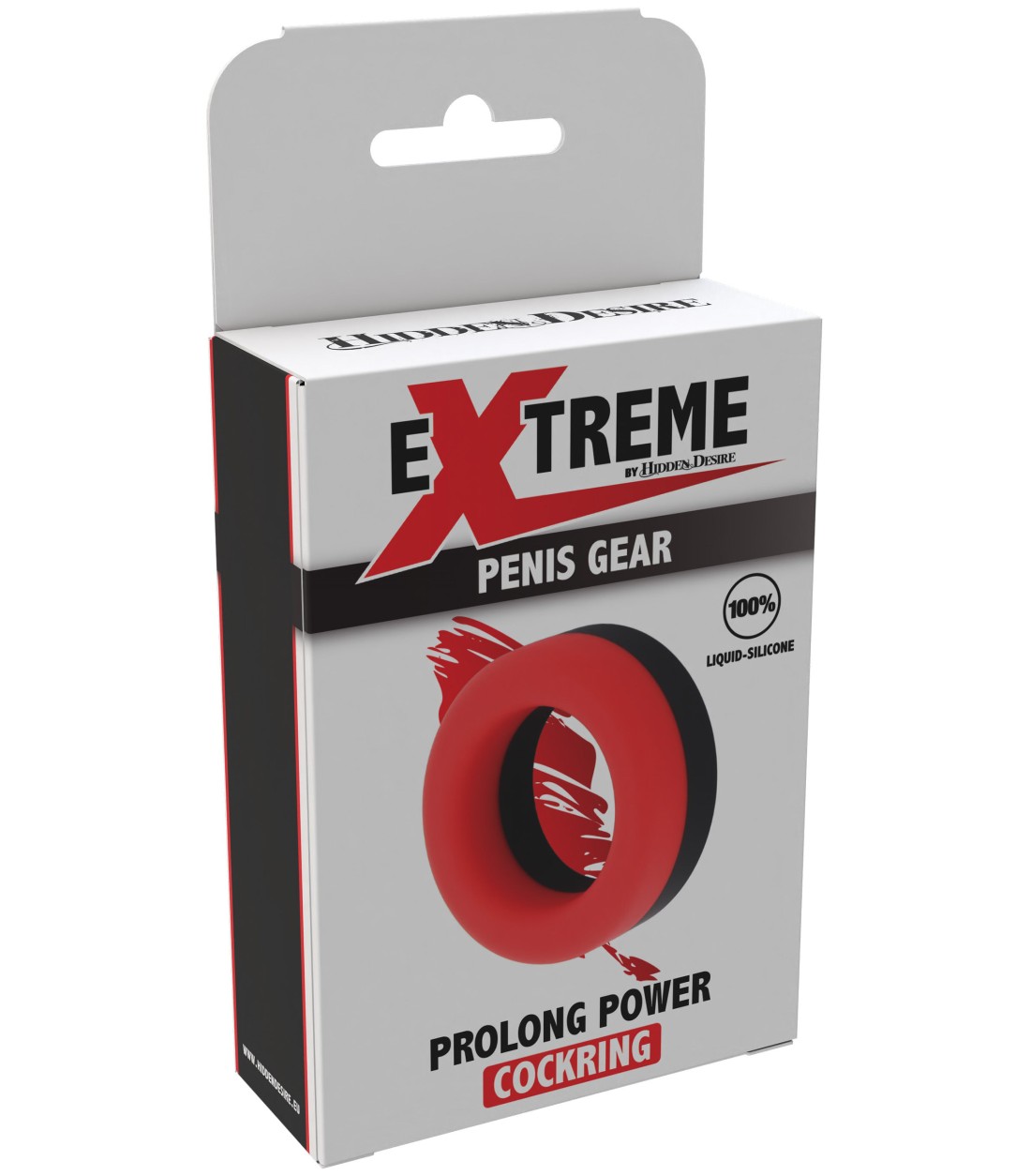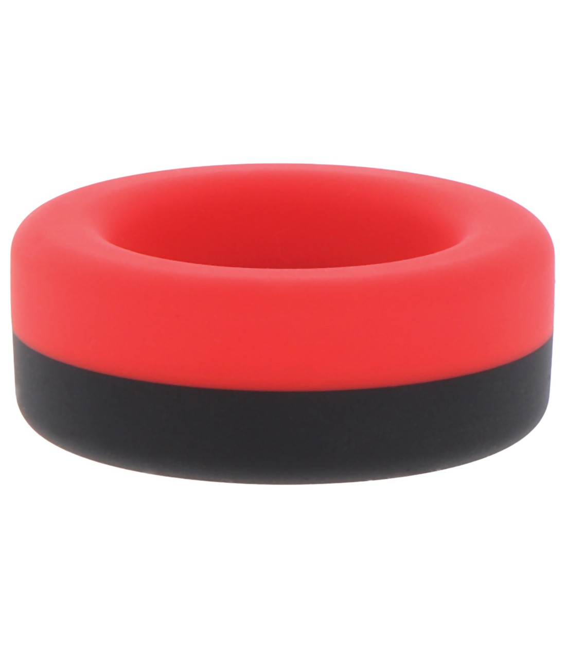 Prolong Power Cockring - röd/svart penisring, av bra tjocklek, enkel med tvåfärgad, slät yta, väldigt töjbar i ganska fast 100% flytande silikon.