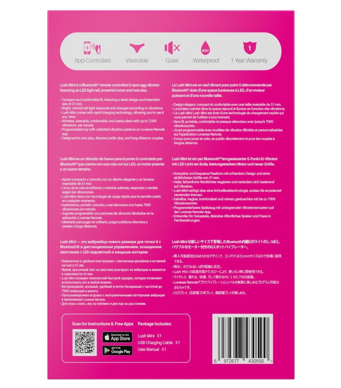 Lush Mini från Lovense i rosa, en härligt starkt vibrerande, appstyrd äggvibrator för skön stimulans från insidan, lika skön och med samma funktioner som sin storebror (Lush 4), men mindre i storlek!